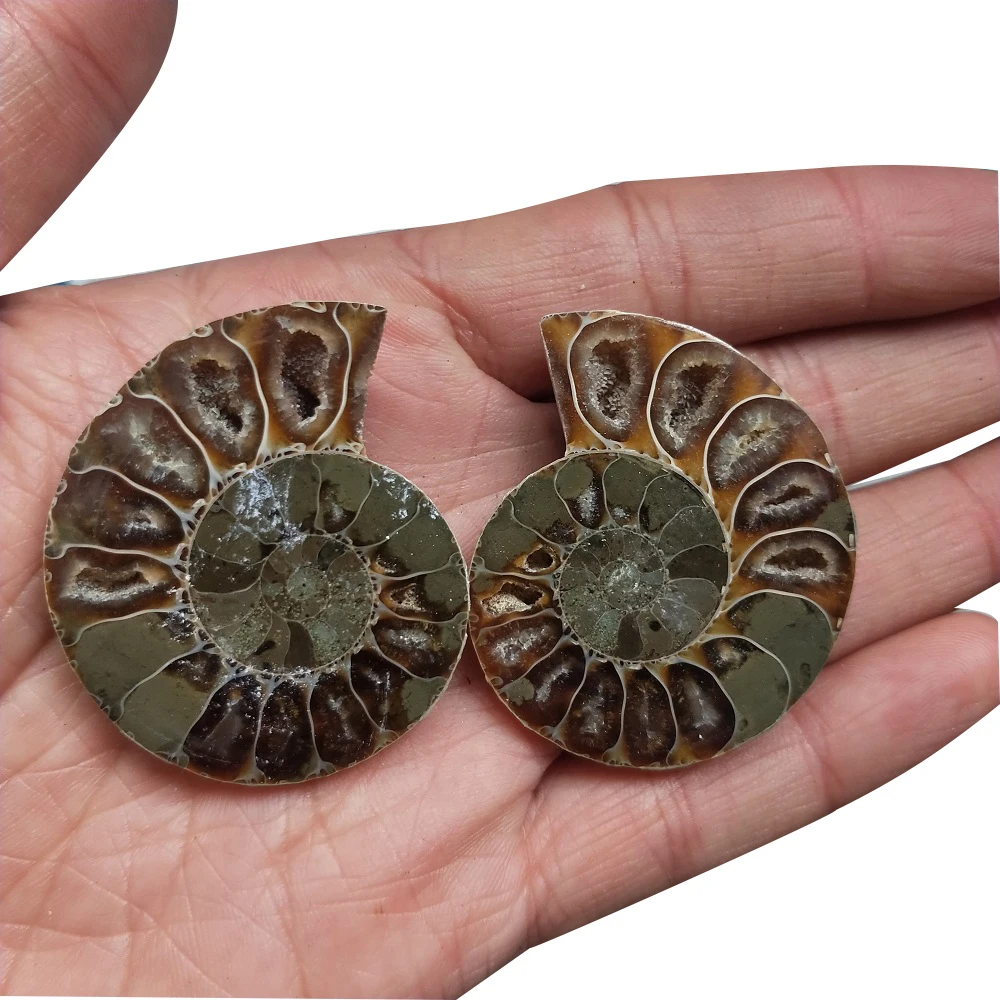 A pair Natural Conch Chrysanthemum Rainbow Split Ammonite Fossil Specimen Shell Healing Madagascar